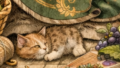 皇帝王冠が少し傾き、書類や計算機の前で自信なさげに座るライオンの姿。